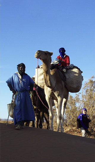 On vous attend dès votre arrivée à l'aéroport et on s'occupe de vous avec soin jusqu'à votre vol de retour. On a pensé à tout, rien (ou presque) n'a été oublié. Les étapes des trekkings sont adaptées en fonction de l'endurance des participants. Après quatre ou cinq heures de randonnée par jour, il y a encore suffisamment de temps pour se reposer et lire, pour discuter, que ce soit sur une dune isolée ou dans le "salon" confortable que les nomades aménagent en plein désert chaque midi et chaque soir à l'aide de tapis. Vos hôtes font tout pour que vous trouviez ce que vous recherchez depuis longtemps: chaleur, gaieté, recul, clarté. Quoi de plus reposant ?