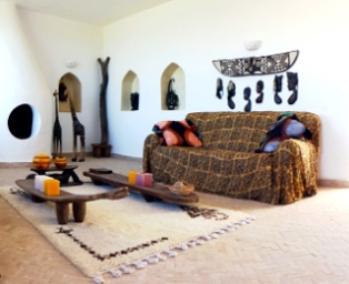 Alle vier geräumigen Gästezimmer des Hauses haben ein eigenes Bad, das mit Tadelakt verputzt ist. Der Aufenthaltsraum mit Sofas vor einem offenem Kamin und einem gemütlichen Essplatz für acht Personen präsentiert durch eine breite Fensterfront die Aussicht über Kaktusfeigen und Arganienbäume hinweg aufs Meer. Der Innenhof lädt ein zum Verweilen oder Lesen. Genießen Sie auf der großen Dachterrasse ein Sonnenbad mit Blick auf das Meer.