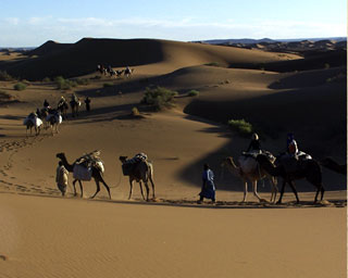 Die Trekkings finden im traditionellen Karawanenstil statt. Das heißt, sie gehen zu Fuß oder reiten auf dem Dromedar. Die einfachen Camps werden am Abend errichtet und am Morgen wieder abgebaut.So schonen wir den empfindlichen Lebensraum Wüste und fügen ihm so wenig wie möglich Schaden zu.