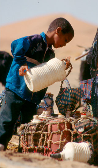 Renard Bleu Touareg souhaite vous permettre de vivre un moment en marge du quotidien tout en agissant dans un contexte social et écologique. Le concept inhabituel de l'organisation du voyage prouve que ces exigences sont compatibles: Tous les accompagnateurs sont nomades. Leurs familles vivent en grande partie dans le désert. L'argent que gagnent les caravaniers, les chameliers et les cuisiniers chez Renard Bleu Touareg contribue à l'entretien des grandes familles dont le maintien dans le désert s'avère de plus en plus difficile.